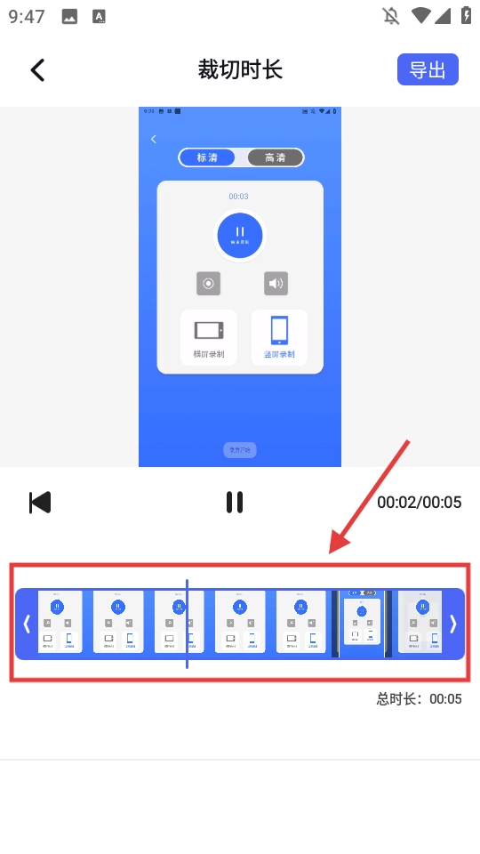 4、点击右上角【导出】,完成视频裁切时长操作。
