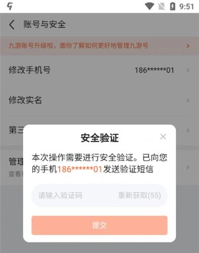 5、之后再绑定你需要改的手机号和验证码,点击提交即可。
