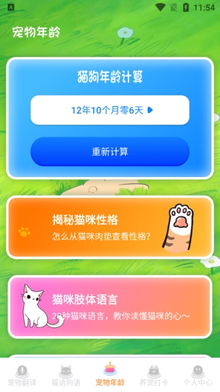 宠物年龄转换:宠物的年龄转换成人的是多少岁呢?输入宠物的出生日期即可一键计算哦;