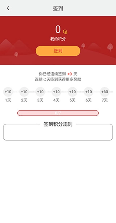 2、【积分商城】由于是不定时刷新,所以我们这次什么也没有看到,小编现在也为大家找到了获取积分的方式,一是【签到】,连续签到积分更多;