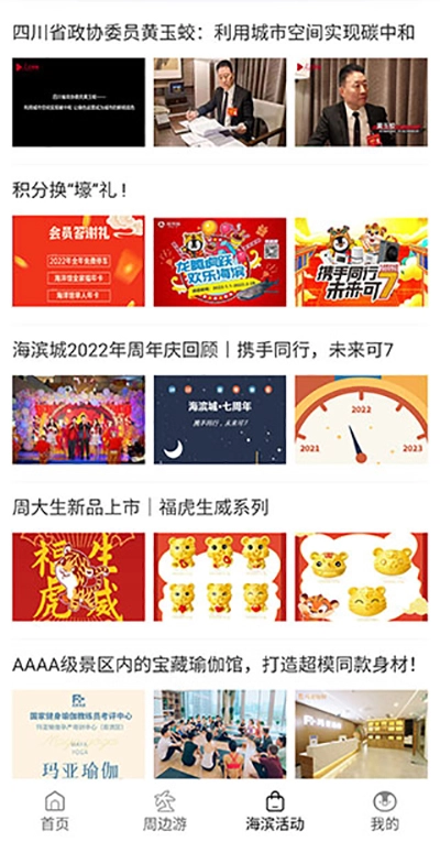 3、海滨活动:该页面主要汇集的是海滨城的一些庆典、活动和资讯,甚至还包括积分活动公告;