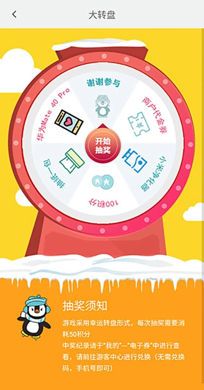 3、其次是【大转盘抽奖】。由于大转盘抽奖每次需要消耗50积分,并且并非每次抽奖都必定能获得积分,因此它仅能作为获取积分的一种辅助方式。