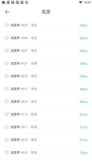 3、接下来挑选一个ip,进入后就能看到各个城市具体的线路信号情况和编号,选一个信号比较好的点击就行。