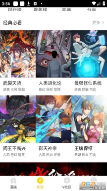 3、设有多种分类浏览方式,包括热门漫画、新作漫画、排行榜、分类板块等。