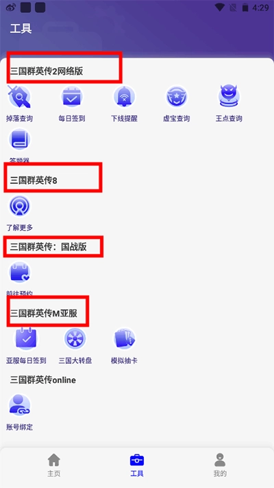 1、三国群英传M助手针对不同的游戏,上线了专属的游戏工具助手,为主公们在游戏时提供更多便利。例如三国群英传2网络版,三国群英传8等。