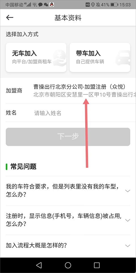 5、在打开的新页面中,选择加入方式,没有车的司机也可以加入