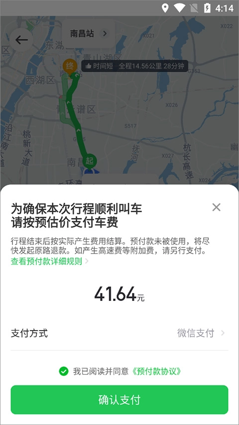 下图是支付页面的截图,下图中的红色方框内的文本信息可以说明高速费用应该由乘客自己承担