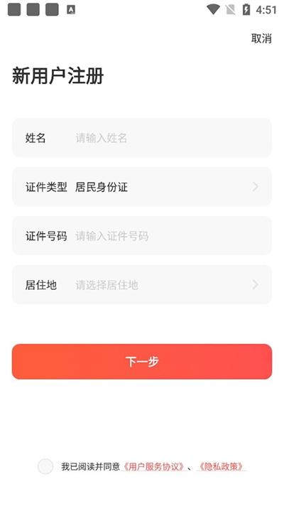 3、新用户注册需要填写姓名、身份证号以及居住地(这里注意是居住地哦,并非身份证上面的地址);已注册过的朋友可跳过这个步骤