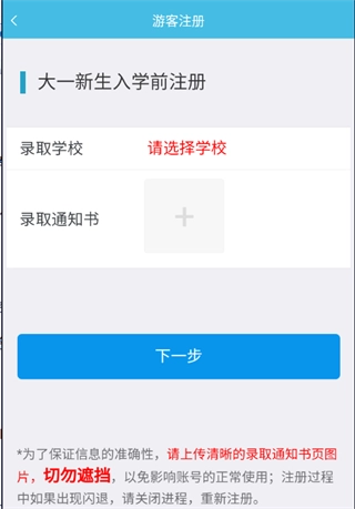 2、选择录取学校和拍照上传录取通知书(拍照时注意光线、保持照片清晰和通知书的信息完整);