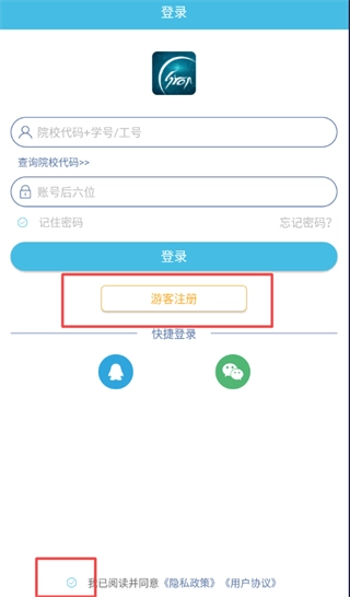 1、打开“翻转校园”,点击“游客注册””按钮;