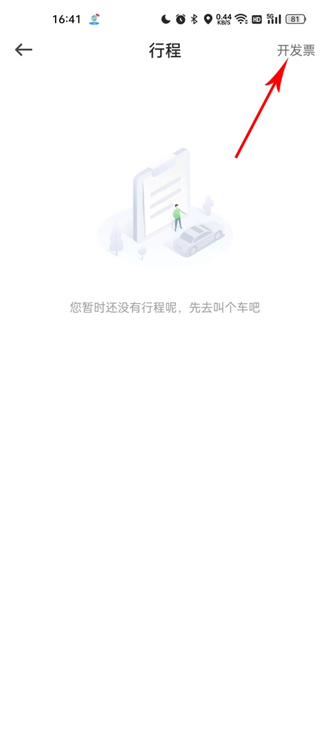 4、进入到行程管理页面之后,右上角有一个开发票的端口,点击进入;