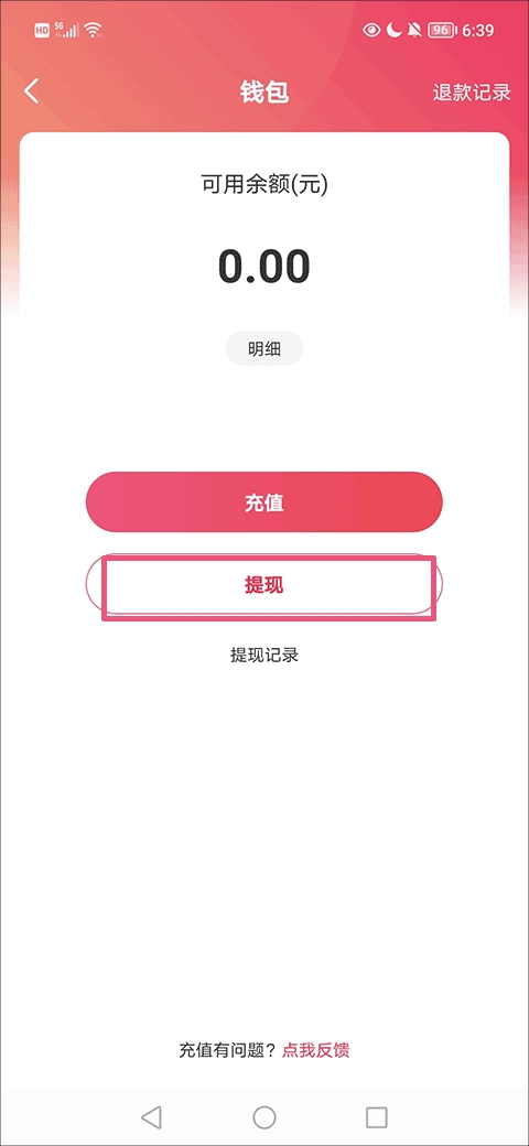 2、然后在钱包界面中找到并点击“提现”选项;