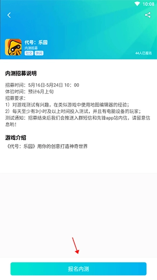 3、绑定之后,点击下方的报名内测;