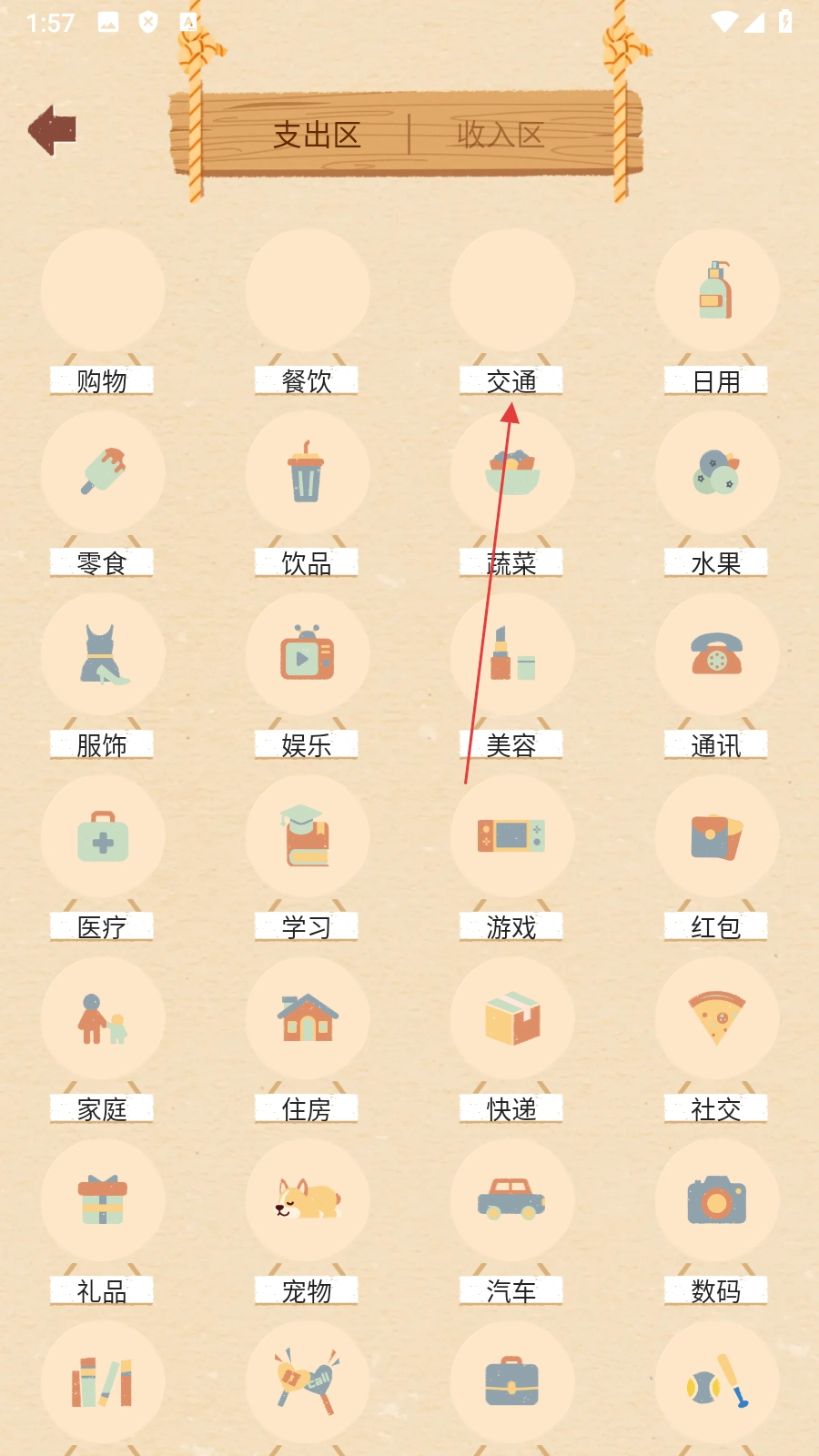 2、在记账分类页面,点击【交通】,进入金额输入页面。