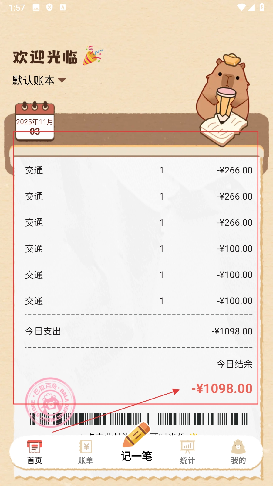 2、搭配可爱的卡皮巴拉形象辅助操作,在记账过程中增添趣味性,打破传统记账工具的枯燥感,提升用户使用兴趣。