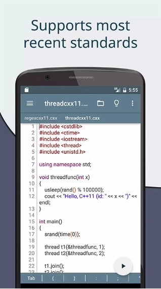 Cxxdroid是IIEC厂商开发的编程器软件,它是为移动端手机用户打造的简易离线编程工具,也是面向编程行业用户的专属版本。用户可以直接在软件内编写代码,操作过程轻松简单。Cxxdroid汉化版多种图形库供用户选用,还支持标签功能、一键分享以及扩展键盘栏,这里包含了C++编程所需的所有符号,使用起来十分方便,并且拥有成熟完善的体系结构。