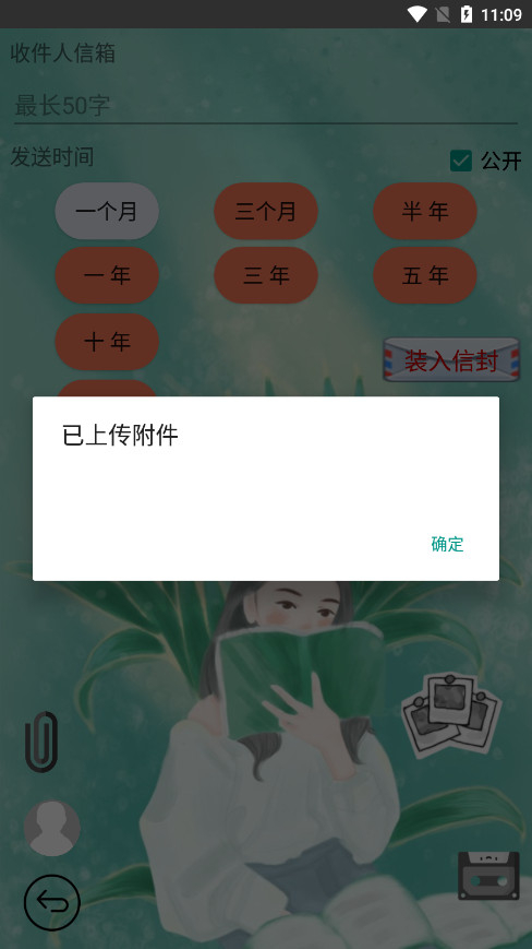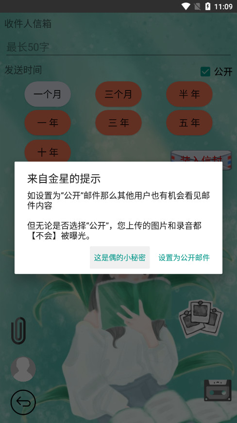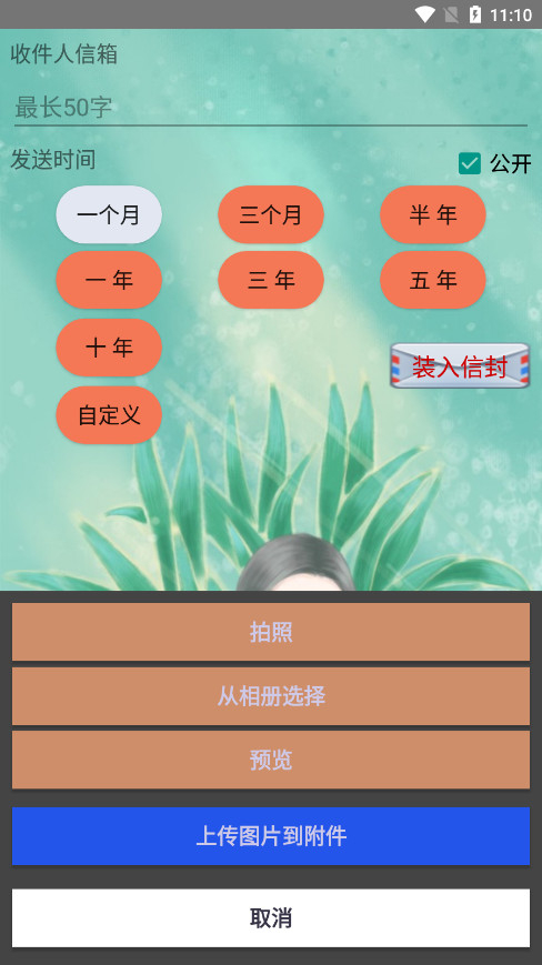 地址,选择信件送达的时间,看是否需要公开,公开意味着在时间到达之后,所有人都能够在此