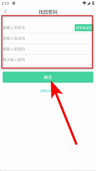 4、输入手机号码,点击获取验证码,输入后设置新密码并再次确认,点击确定,完成密码重置。