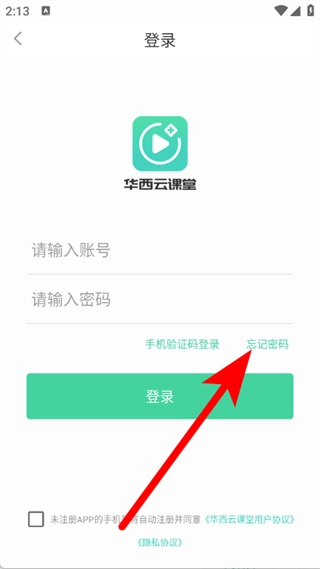 3、在登录页面,点击忘记密码,进入找回密码页面。