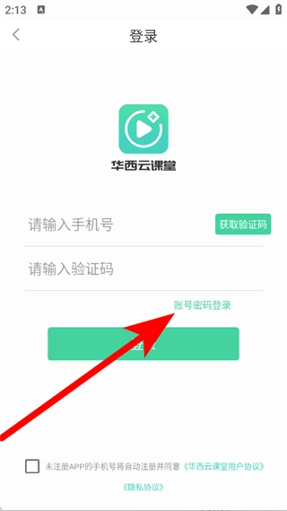 2、在登录页面,点击账号密码登录,进入账号密码登录页面。