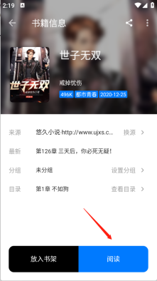 3、点击想看的小说资源以后,点开想看的小说资源以后,点击“阅读”。