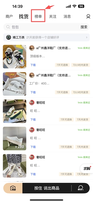 配备“以图搜货”功能,用户只需上传商品图片,就能快速找到对应货源,避免手动搜索的繁琐,提升找货精准度与效率。