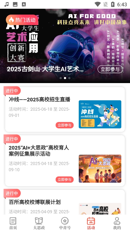 4、互动化:客户端设有中青号板块,邀请校园媒体、招聘企业、团组织等各类机构及个人入驻,共同打造业务往来与心灵沟通的平台。同时,客户端配备了征集、评选、排行、记分等功能,能够支持各类线上互动活动的开展。