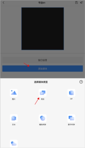2、添加好节目之后,点击“添加媒体”选择“视频”,即可进行添加啦。