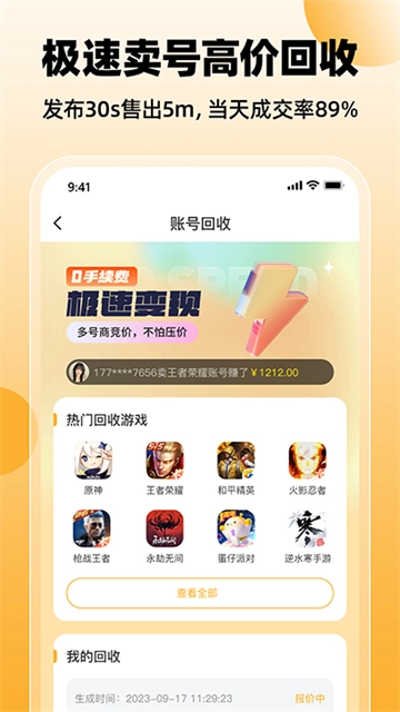 闲置游戏账号一键上架智能验号免费ai截图,发布30秒成交5分钟,当日售出率高达89%,提供一条龙代售模式省心省时省力,极速变现秒提到账,交易手续费更低。平台高价回收,上百家回收商公开竞价,目前更有0元手续费活动等您参与。