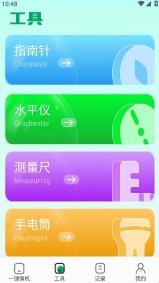 2、提供超实用的工具箱,如指南针,水平仪,测量仪,手电筒等等。
