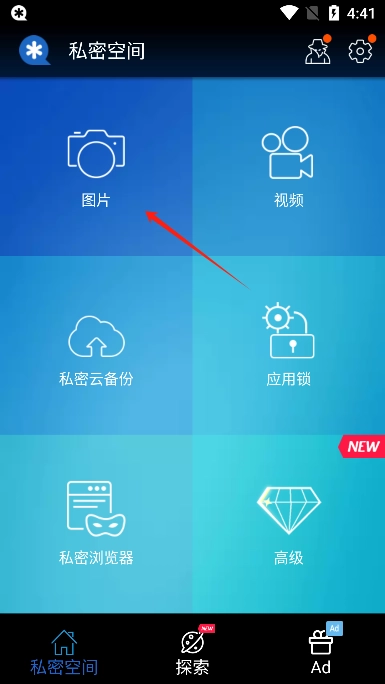 3、密码设置完毕后在软件主页你可以导入你的图片和视频