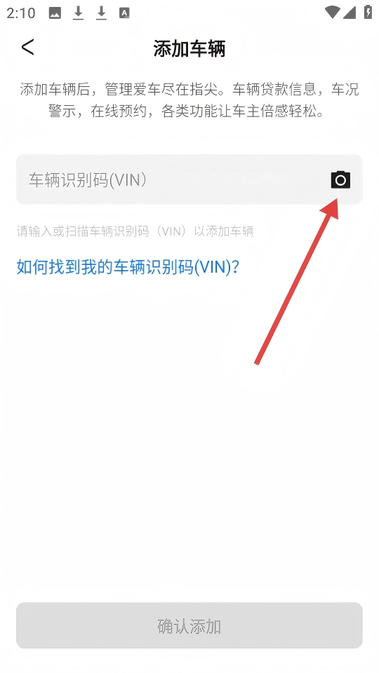 3、点击【车辆识别码(VIN)】右侧相机图标,可扫描添加车辆。