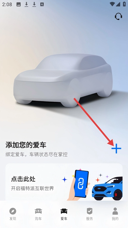 2、点击【添加您的爱车】旁的【+】号,可绑定爱车。