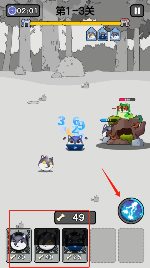 在游戏时,如果丧尸过多,狗头君太少,我们作为召唤师可点击右下角能量蓄满了的技能。