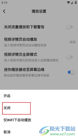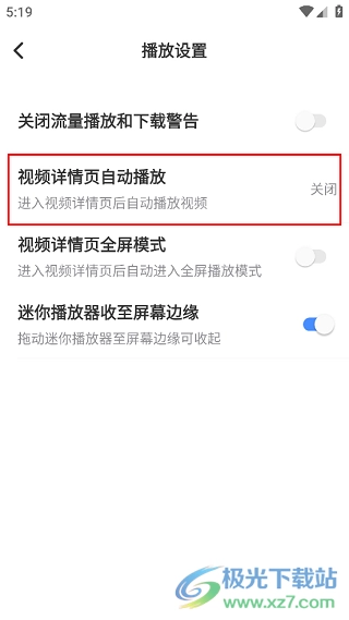 4、然后在打开的新窗口中,选择点击其中的“视频详情页自动播放”选项。
