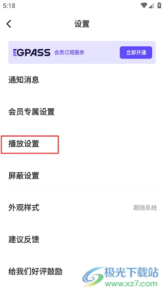 3、随后就会进入到“设置”界面中,找到列表中的“播放设置”进行点击。