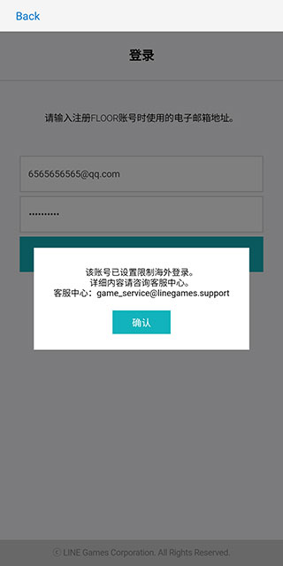 2、如果提示【该账号已设置限制海外登录】,就代表加速器和区服不一致。