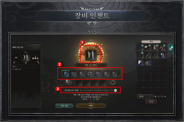 您可以在①中注册要附魔的物品。