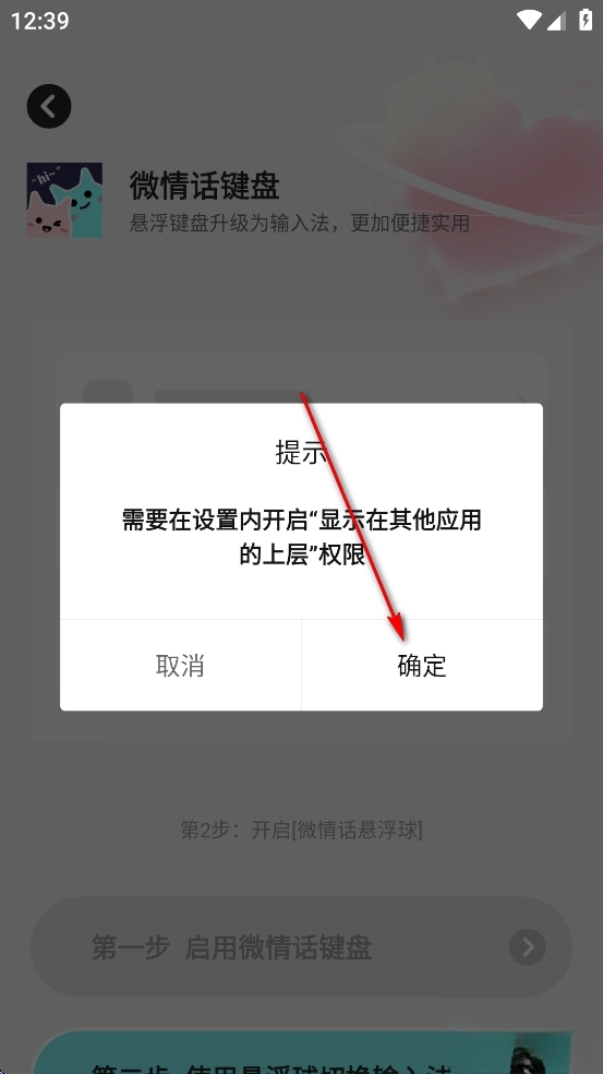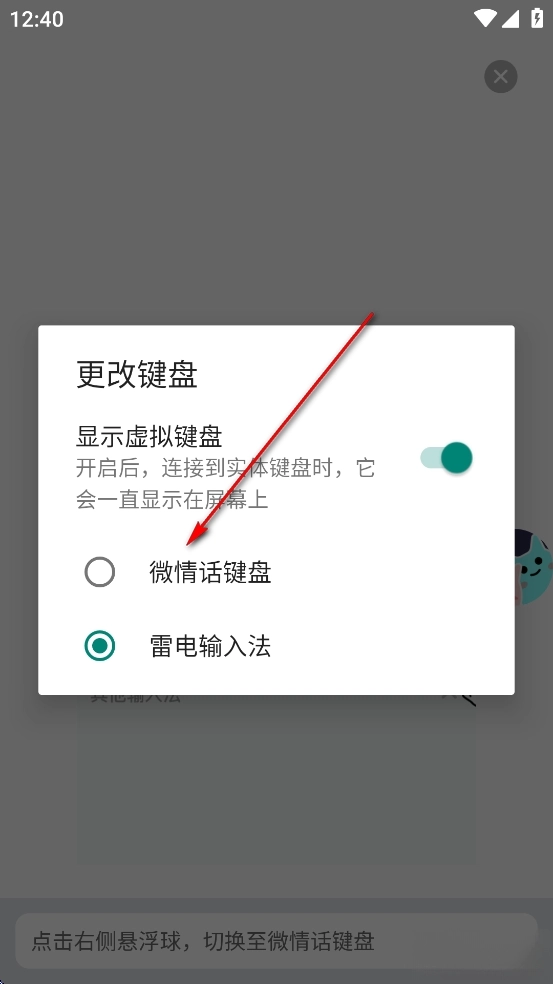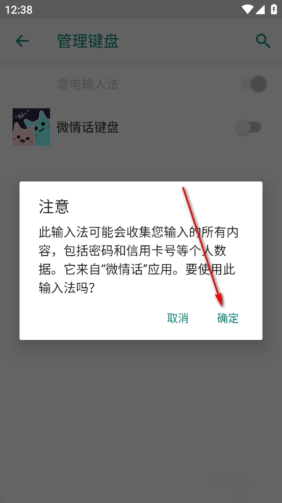 点击【微情话键盘】后面的开关