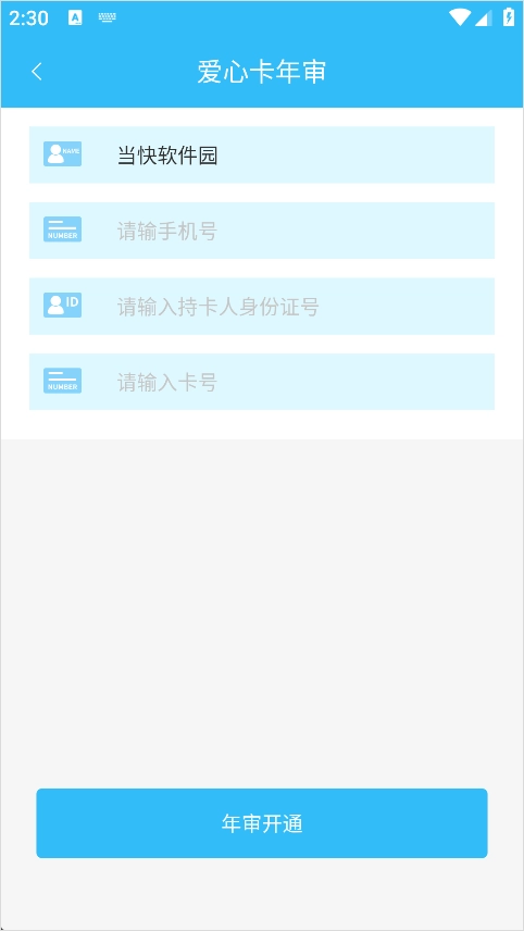 2、进入页面后,选择需要进行年审的爱心卡类型。