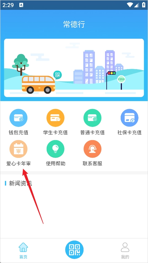 1、启动常德行App,在首页找到并点击【爱心卡年审】的入口。