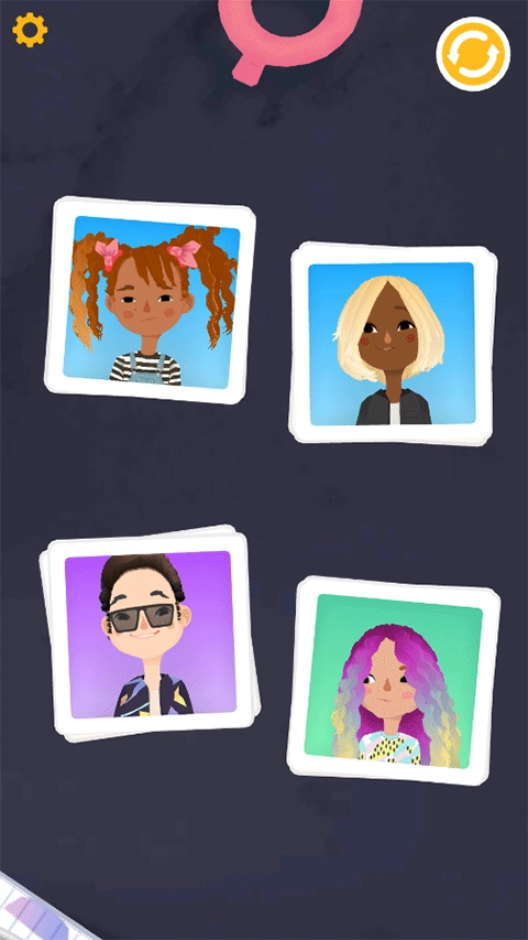 3、5个全新角色和11种头发颜色可供选择和搭配组合,尽情设计时尚发型吧!