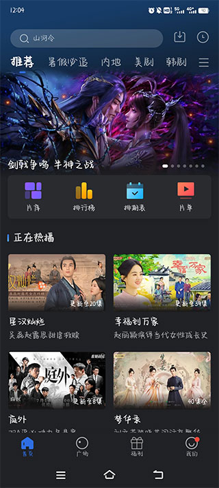 3、进入“广场”页面,能看到其他星夜影视用户推荐的优质剧集,也可以与已关注的好友互动交流,进行点赞和评论操作。