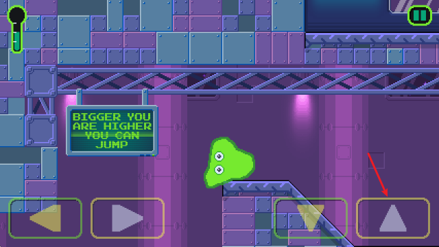 1、游戏中可以通过左右按钮控制史莱姆自由的移动。