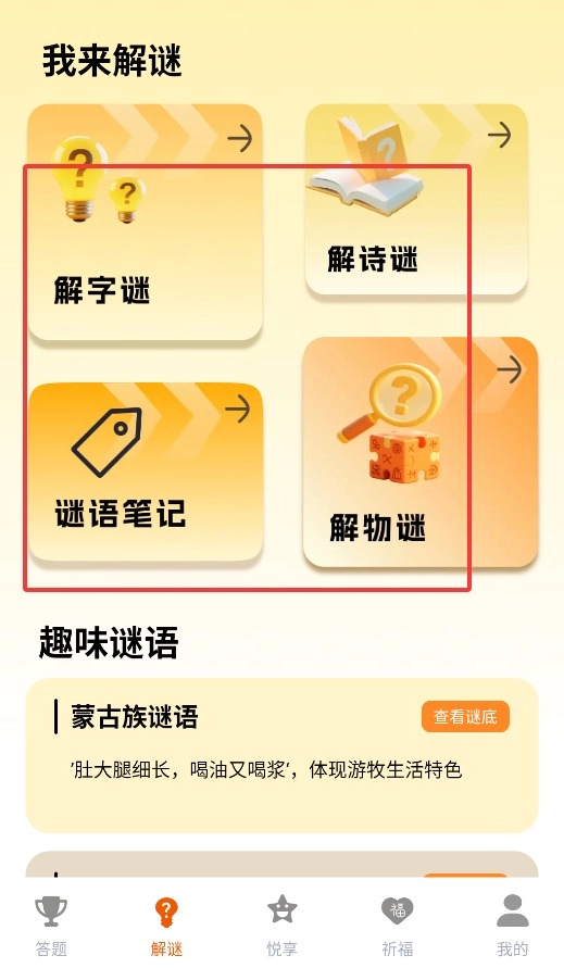 3、通过解密功能,可使用谜语笔记、解物谜、解诗谜等多种解谜模式。