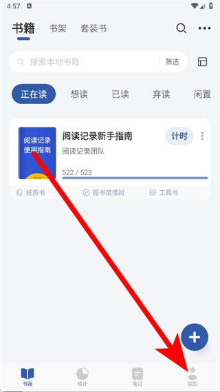 1、打开阅读记录,点击底部导航栏最右侧的“我的”选项,即可进入个人中心页面。