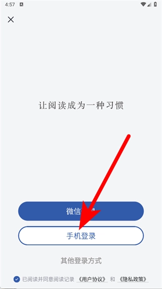 3、在登录页面,选择手机登录,进入手机号登录界面。