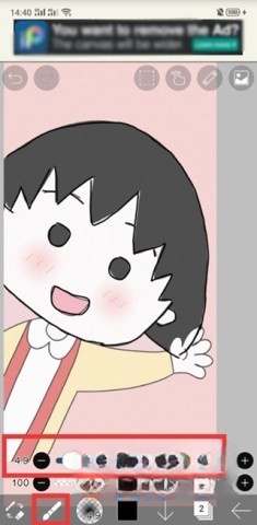 4. 接着用画笔描画小丸子的轮廓,选择软蘸笔,任由笔端舞动,勾勒出人物的形象。