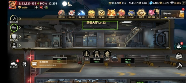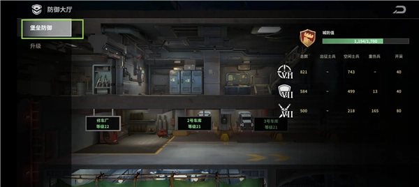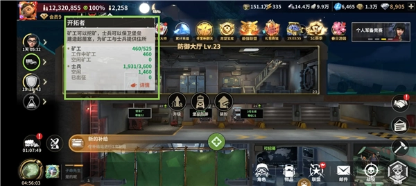 就能看到你目前士兵和矿工数量以及上限了,然后可以点击详情或者找到防御大厅。