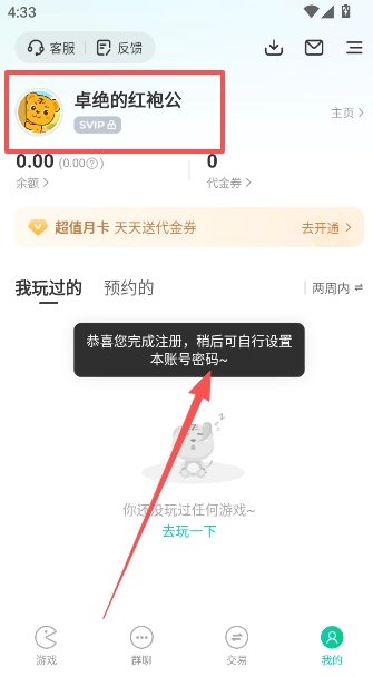 3、完成账户注册步骤之后,可自行设置用户密码,以及昵称等选项的设置。